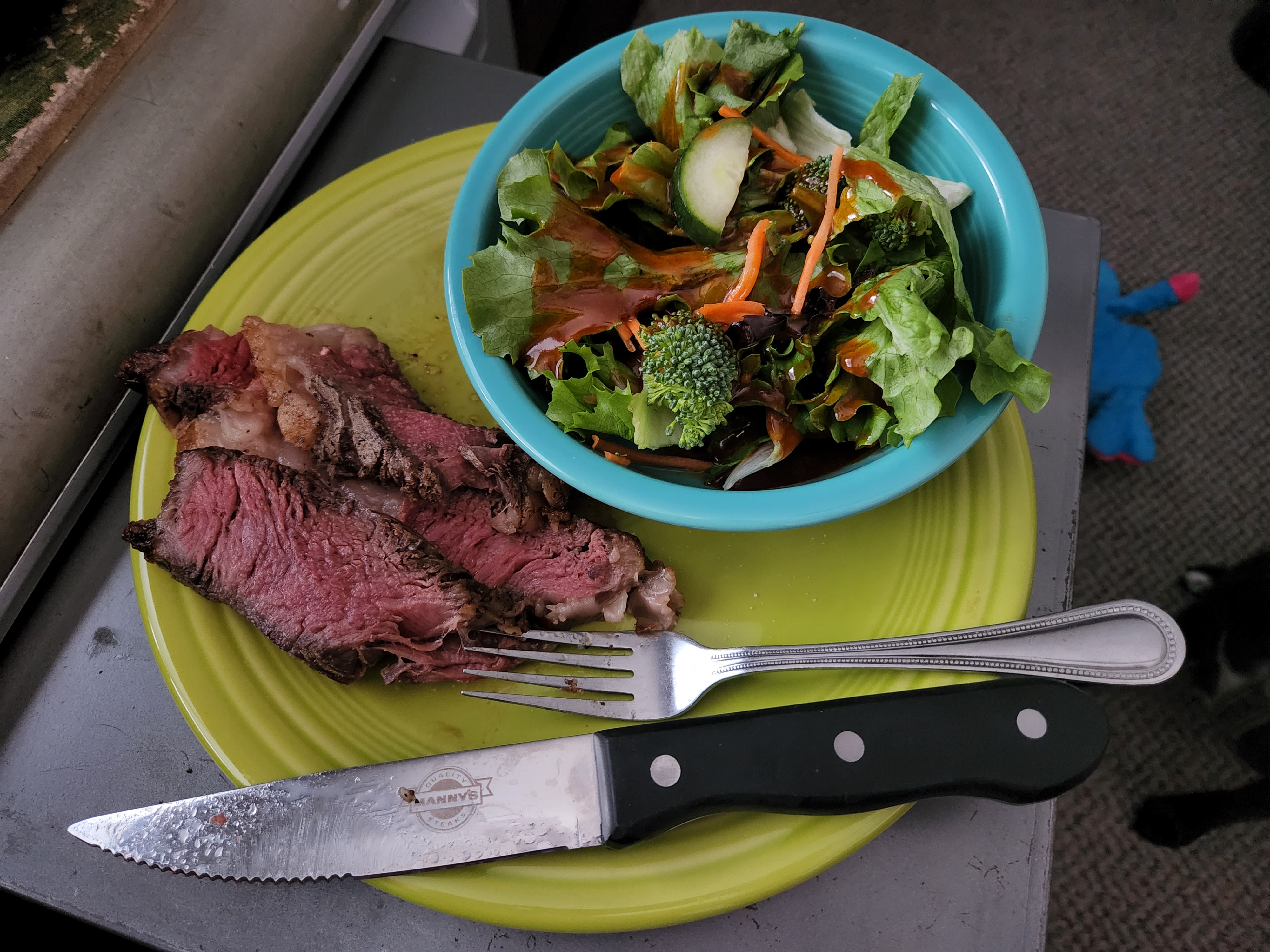I took great care while handling the steak, lest I crack my own skull.  My greater fear, however, was having such an expensive steak and not cooking it to perfection.  I shouldn't have worried.  Not even I could ruin a 3-inch thick chunk of prime beef.